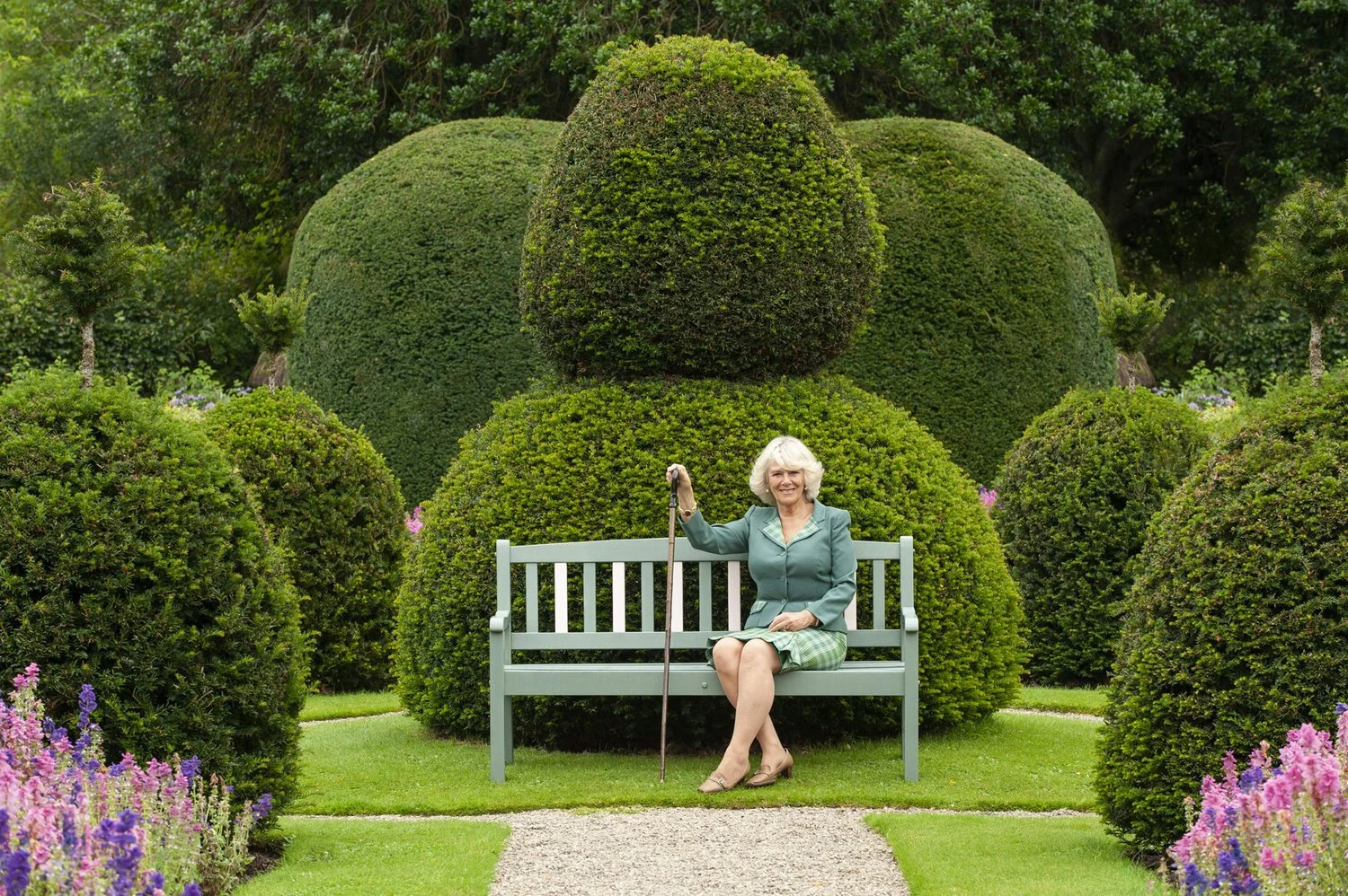 Her Majesty the Queen in the garden of Birkhall House. She is wearing Lord of the Isles Tartan